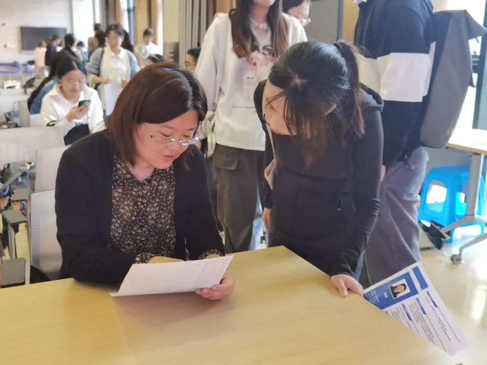 讲座结束后,由何逸潇、沈萍及张柳琼老师为2024届毕业生同学提供了简历“门诊”服务,为毕业生们开展“一对一”简历修改指导,根据同学们提交的纸质简历内容提出针对性修改意见。现场同学们纷纷表示此次简历“门诊”活动收获颇多,切实提升了同学们的简历质量,为毕业生求职加油助力。
