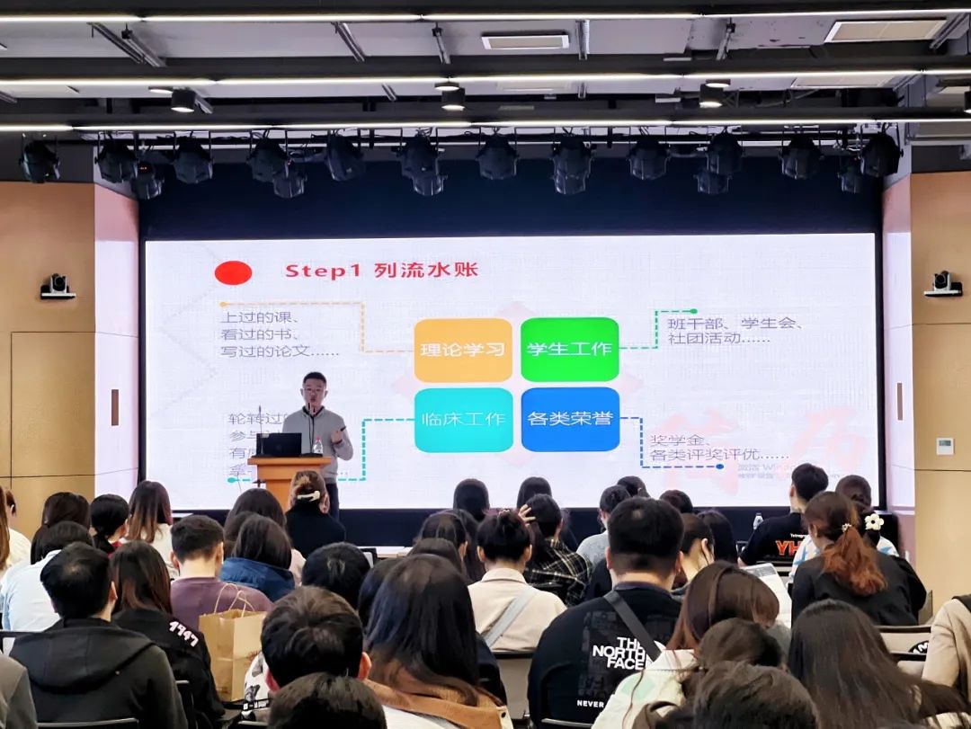 首先,何逸潇老师以“手把手带你精修简历”为主题,为2024届毕业生们讲述了如何进行简历中内容的筛选、布局和扩充。“一份好的简历,是需要站在用人单位角度来写的,让他们认为你和岗位是匹配的。”何老师指出,同学们要谨记相关性原则,要根据目标岗位的要求来重点介绍同学们的相关经历,既可以从学生工作、临床经历等多个维度来扩充简历的丰富度,用详实的数据去体现内容的真实性,以充分展示自己的优点;也要在了解清楚自己所应聘岗位的硬性要求和隐性要求后再有针对性地“定制”简历,不要盲目地一稿多投。