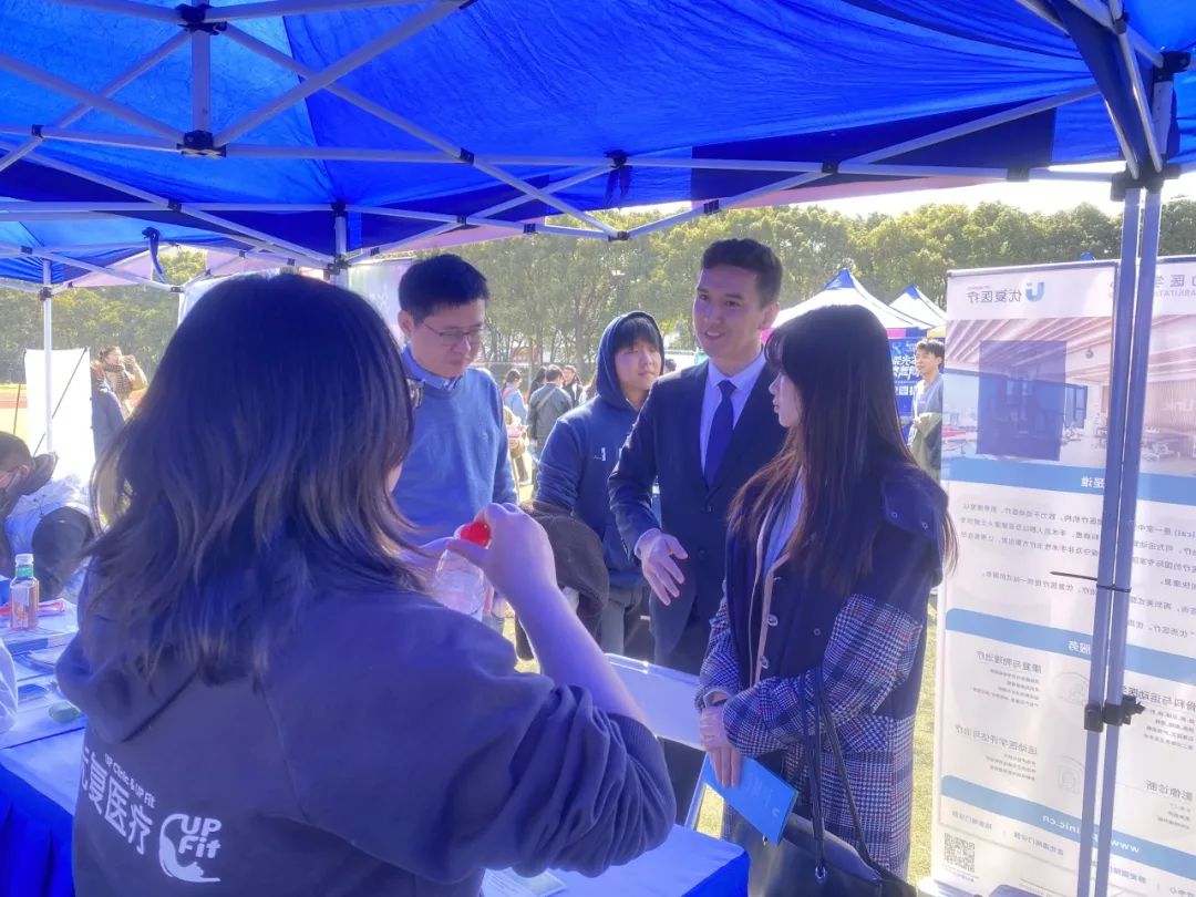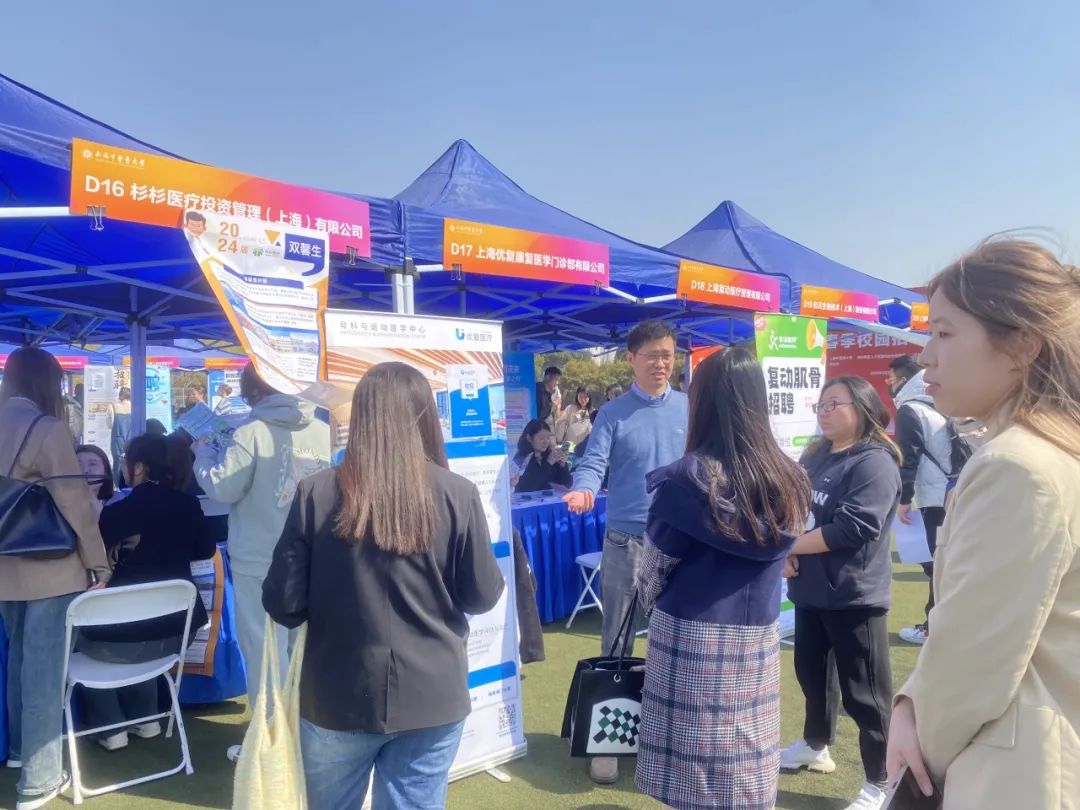 招聘会现场气氛热烈,我院两名应届毕业生李明芮、陆凌玮在学校领导和学院领导的现场见证下获得校级岐黄育人实践基地上海申养康复医院发放的录用offer。