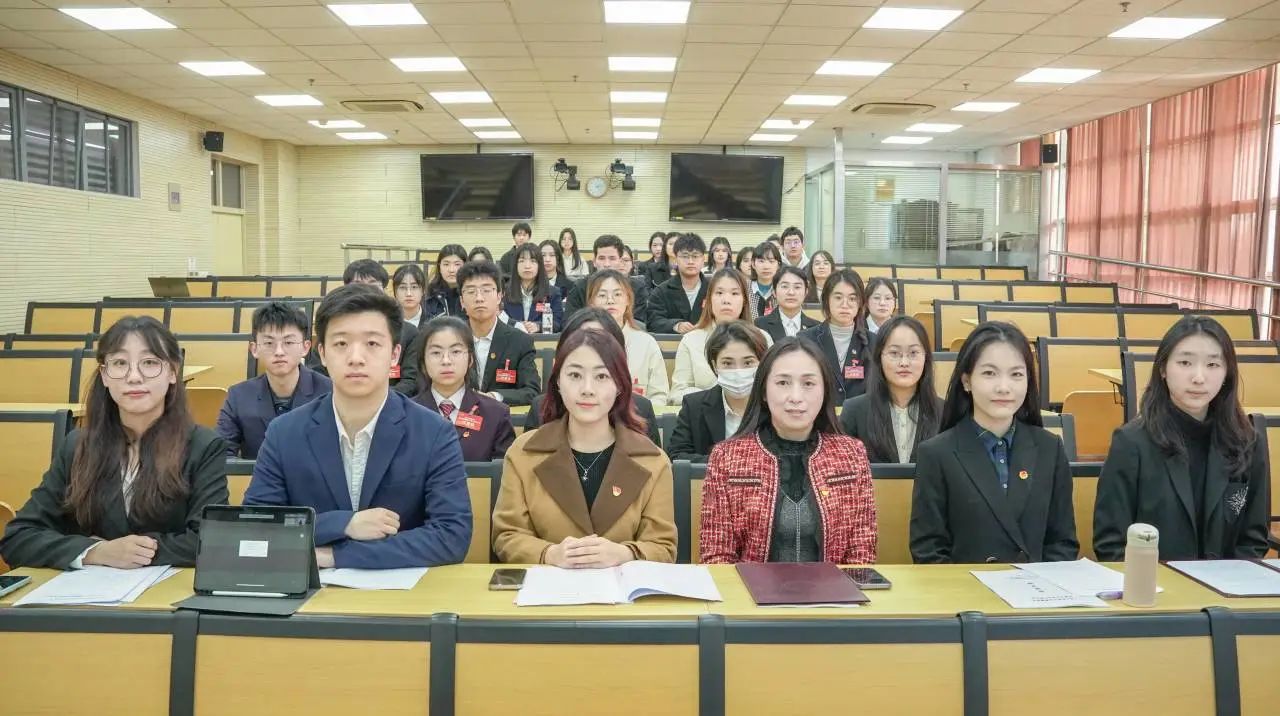 我院党委副书记毕亚男、团委书记孙雅静以及48名学生代表参加大会。会议由我院学生会文体部的陈王悠艺同学主持。