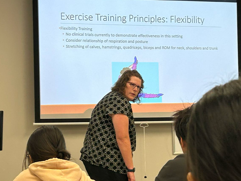 5月27日,周学姐与我们分享了一些最新的康复技术和疗法,以及在康复过程中面临的挑战。她强调了科学研究在康复领域的重要性,并鼓励在座的学生们积极参与相关的实践和研究活动,为康复治疗的进步贡献力量。