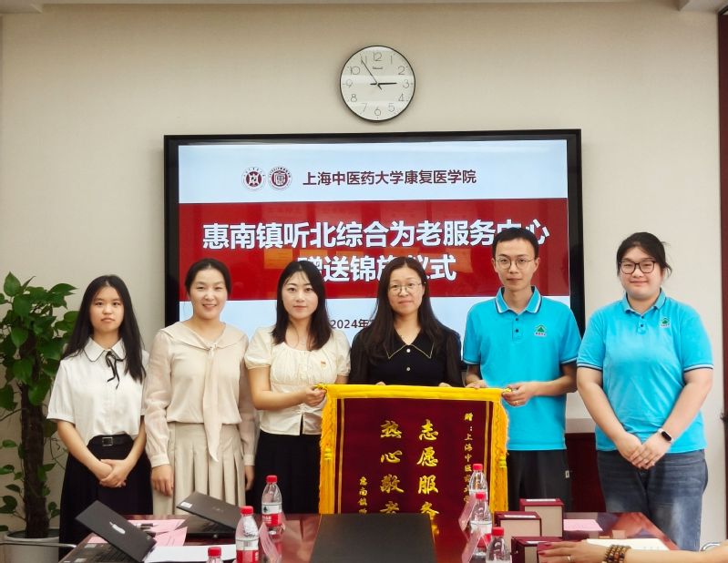 惠南镇听北综合为老服务中心向学院志愿服务队赠送了感谢锦旗。康复医学院志愿服务队党员教师代表、康复物理治疗教研室教师柏怡文老师、学院团委书记孙雅静老师、队长王欢同学共同接受锦旗。王欢同时也是“大爱初心为助学 民族团结促和谐”专项资助项目受助学生,她以优异的成绩获得了拟推免到重庆大学继续深造的机会。王欢的成长故事集中展现了康复学子在学校和社会双重关爱下努力提升自我,并以理论知识和专业技能回馈社会、传递爱心的育人闭环。