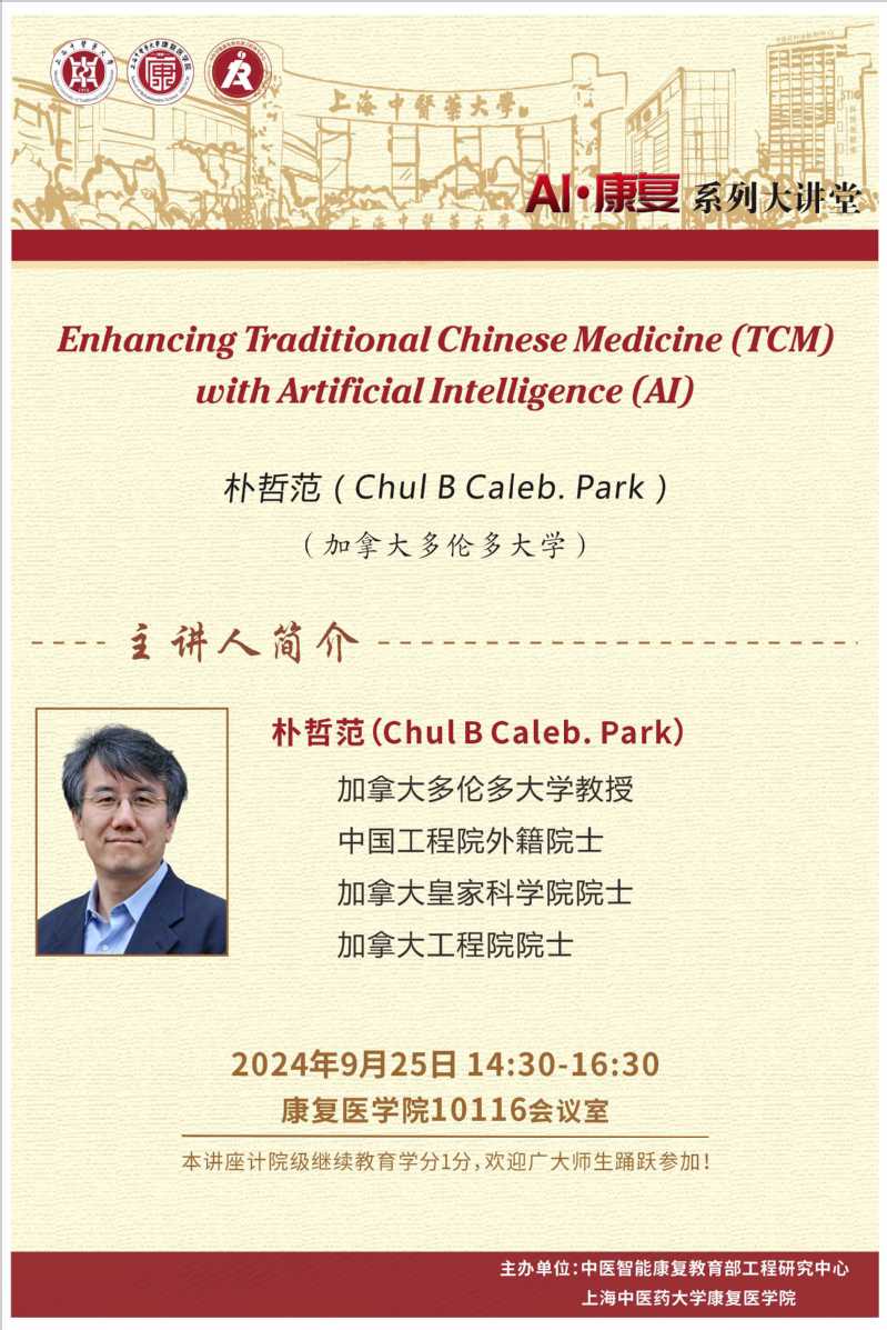活动主题:AI·康复系列大讲堂:Enhancing Tiaditional Chinese Medicine (rCM) uoith ArtificialIntelligence (AI)