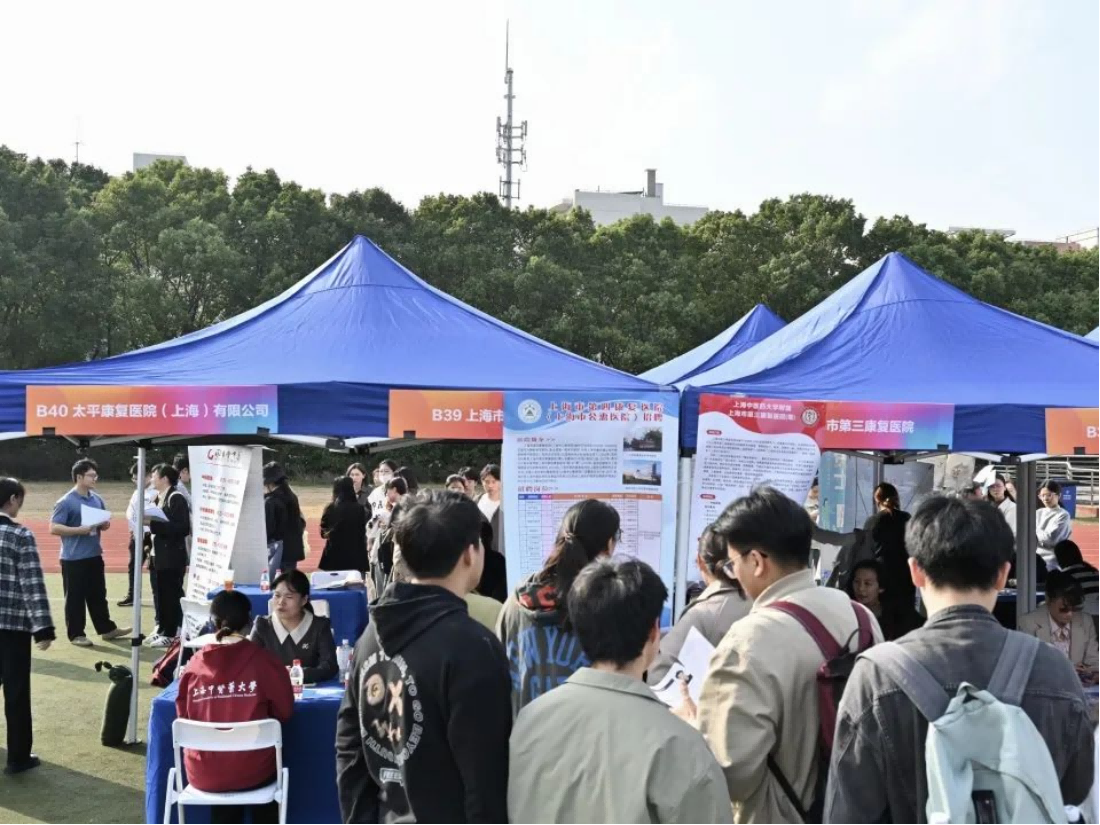 下午,2025届上海市高校毕业生招聘会医药专场在我校体育场举行。我院领导班子带领辅导员老师深入招聘会现场,与相关康复用人单位进行了深入交流,了解人才需求及招聘信息,积极推荐我院优秀毕业生,为应届毕业生拓宽就业市场。