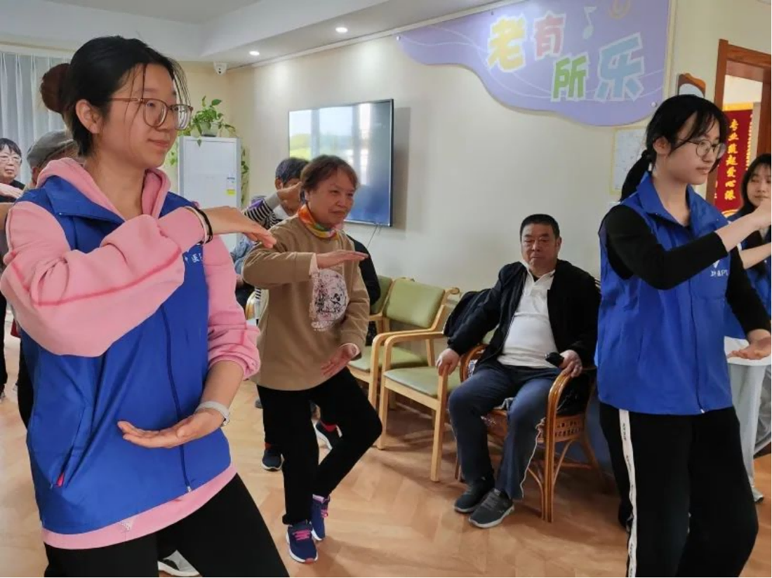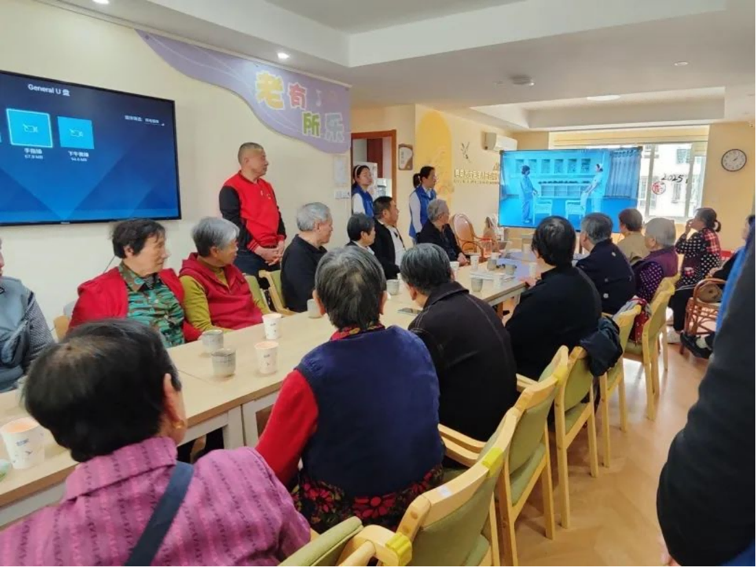 在视频教学环节,志愿者们播放了平衡训练小游戏以及太极拳的科普视频,激发了大家对日常锻炼的新灵感。最后,在太极拳的舒缓节奏中,志愿者细致讲解了“搂膝拗步”“如封似闭”等经典动作的要领与功效,带领大家一同体验太极的静谧与力量