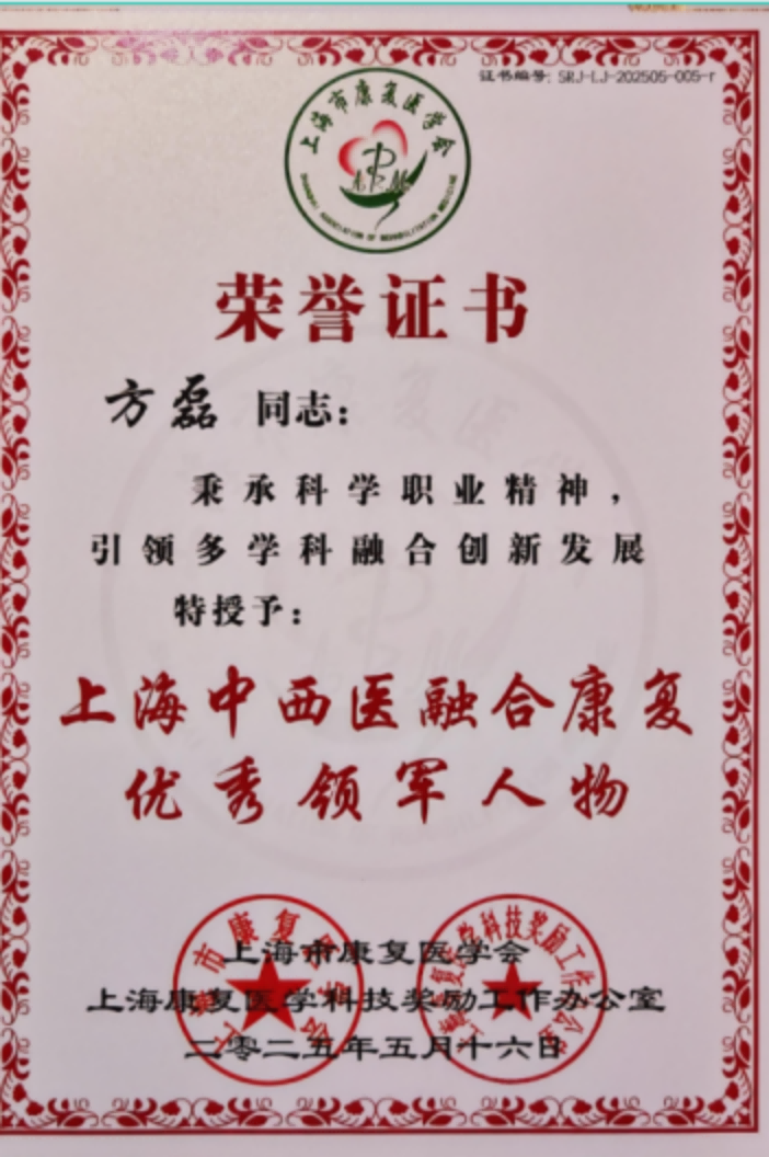 我校康复医学院传统康复教研室主任方磊教授获“上海中西医融合康复优秀领军人物”荣誉称号。方磊教授长期专注中西医康复治疗技术的深度融合研究。围绕肌少症核心问题开展中西医结合康复干预的循证研究与机制探索。近年发表SCI 期刊论文30余篇,第一完成人获上海康复医学科技奖一等奖、中国康复医学会科学技术奖二等奖等多项奖励。牵头WHO脑卒中、肌少症等疾病传统康复临床实践指南研究项目,提升中医康复国际影响力。在人才培养方面,立足交叉与融合理念,整合多学科资源构建培养中西医结合康复治疗人才培养模式。