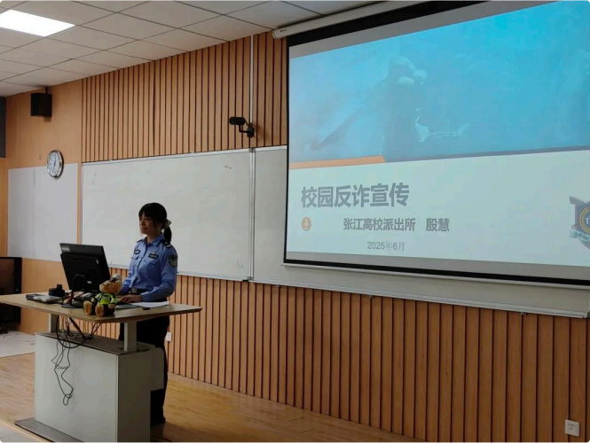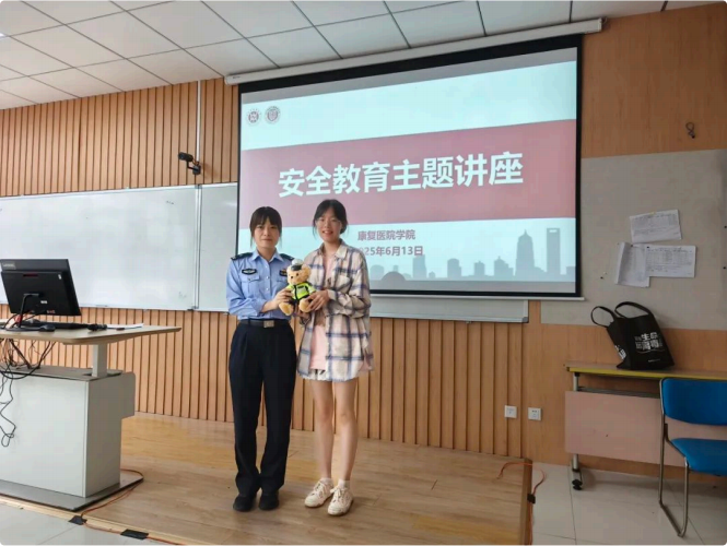 2025 年 6 ⽉ 13 ⽇下午 ,为增强学⽣的安全意识和法治观念 ,切实筑牢校园安全 “ 防护墙” ,康复医学院特邀张江⾼校派出所⺠警殷慧开展 “ 电信⽹络诈骗 ,校园反诈宣传” 安全教育主题活动。康复医学院党委副书记毕亚男、学院辅导员王馨娅、丁禹洁出席 ,本科⽣及研究⽣参加。