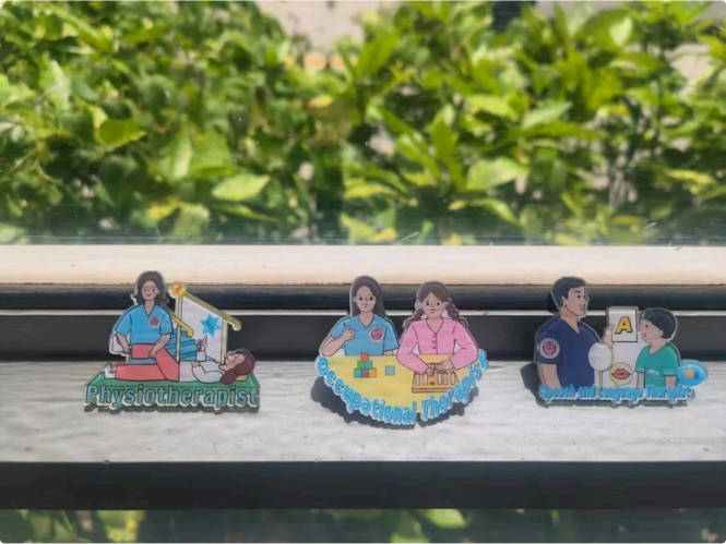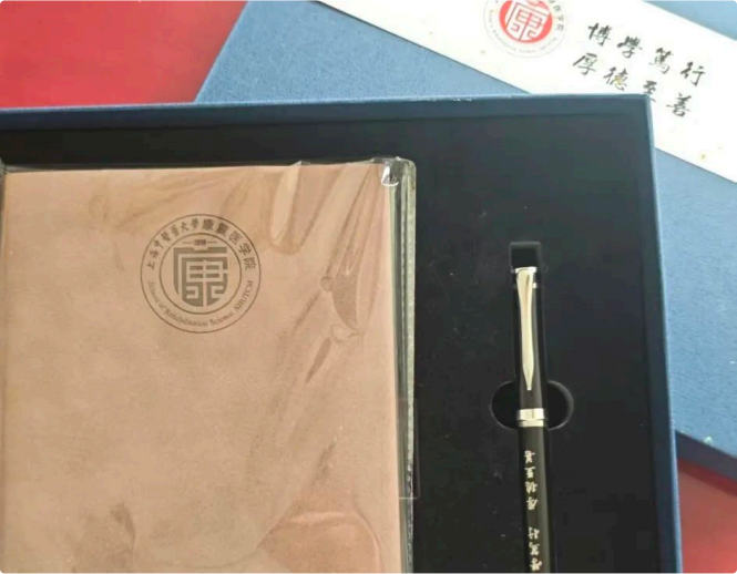 褚⽴希、汤康敏、毕亚男代表学院向全体毕业⽣送出精⼼准备的毕业礼物 ,饱含着即将离开⺟校的游⼦们的特别祝福。今年的毕业礼物包括:印有每位同学姓名的专属⽂具礼盒套装、印有 美丽校园风光及导师团团⻓寄语的中国风折扇和治疗师专属徽章。