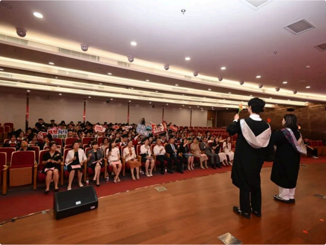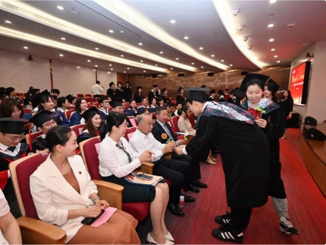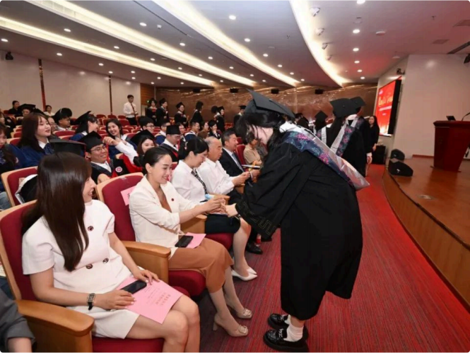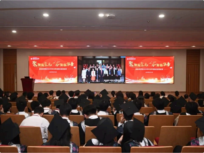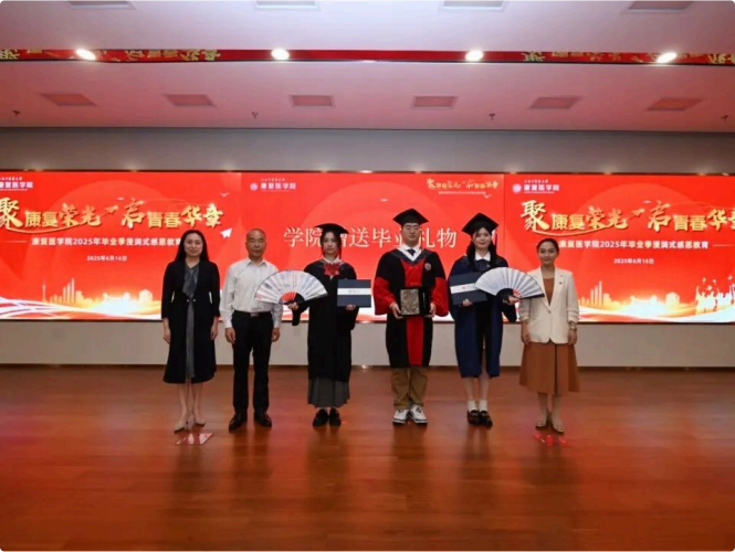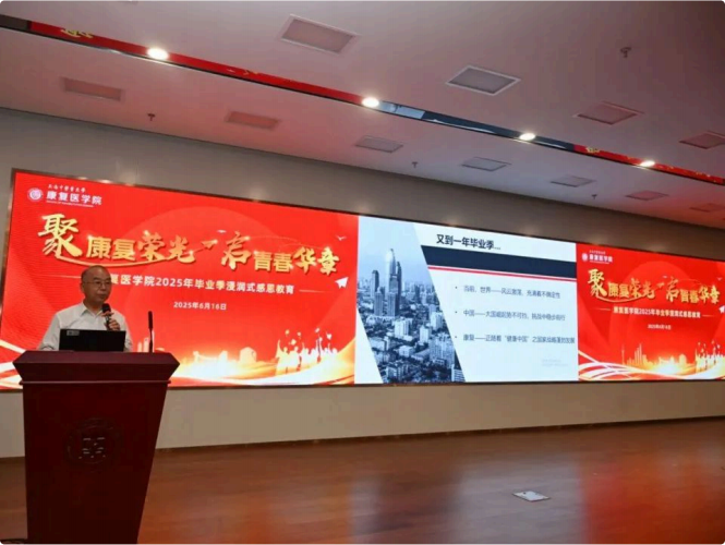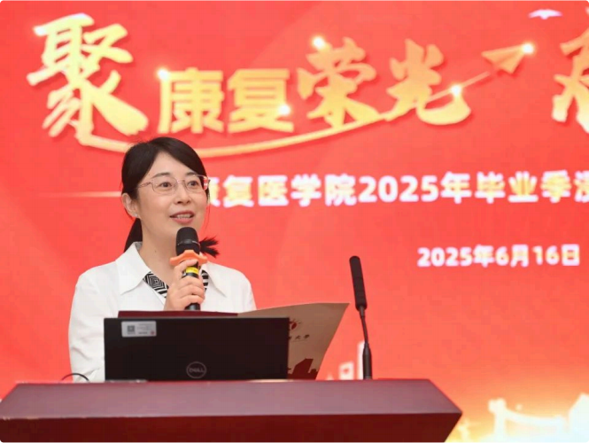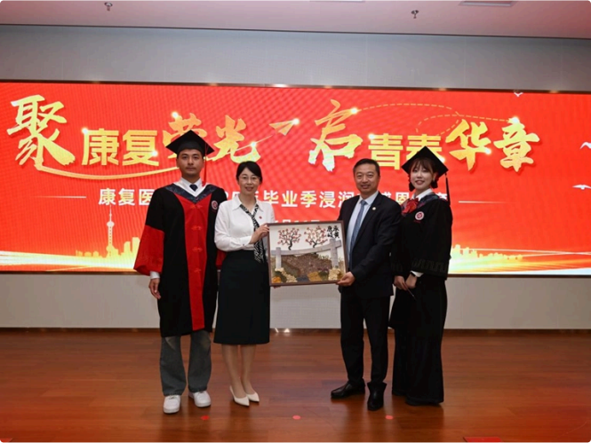 为深⼊学习贯彻习近平新时代中国特⾊社会主义思想 ,进⼀步加强毕业⼤学⽣的思想引领 ,教 育引导毕业⽣饮⽔思源 ,涵养其感恩⺟校、感谢师⻓、感念他⼈的⾚⼦情怀 ,激发全体毕业⽣ ⾃觉爱校、荣校的热情 ,营造温馨难忘的毕业氛围 ,2025 年 6 ⽉ 16 ⽇, “ 聚康复荣光启⻘春华 章” 康复医学院 2025 年毕业季浸润式感恩教育在标准化⼤楼辅楼101 隆重拉开帷幕。康复医学 院⾸任院⻓、 “伴⾏” 导师团团⻓褚⽴希、康复医学院党委书记向延卫、院⻓刘晓丹、副书记毕亚男、副院⻓汤康敏以及康复医学院全体教师、2025 届全体本硕博毕业⽣共同出席 ,活动由毕 亚男主持。