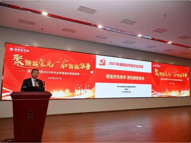 向延卫以 “ 增强党性修养 ,勇担康复使命” 为主题讲授专题党课 ,引导毕业⽣们坚定理想信念 ,永葆昂扬向上的奋⽃姿态 ,在求知探索中锤炼品德、开阔视野 ,始终铭记⺟校谆谆教诲 , 在追求康复医学进步的道路上勤于磨砺 ,精于积累 ,以满腔热忱和昂扬⽃志 ,砥砺前⾏ ,不负 韶华 ,为康复事业贡献⻘春⼒量 ,奋⼒谱写⼈⽣崭新篇章。