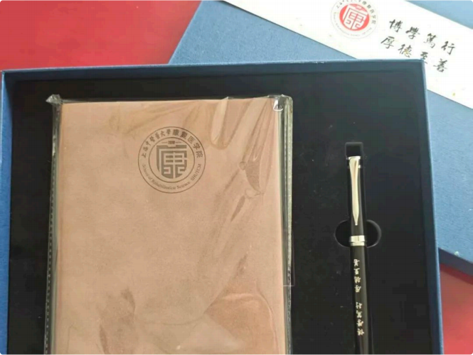 礼盒盒盖上烫印院徽与院训