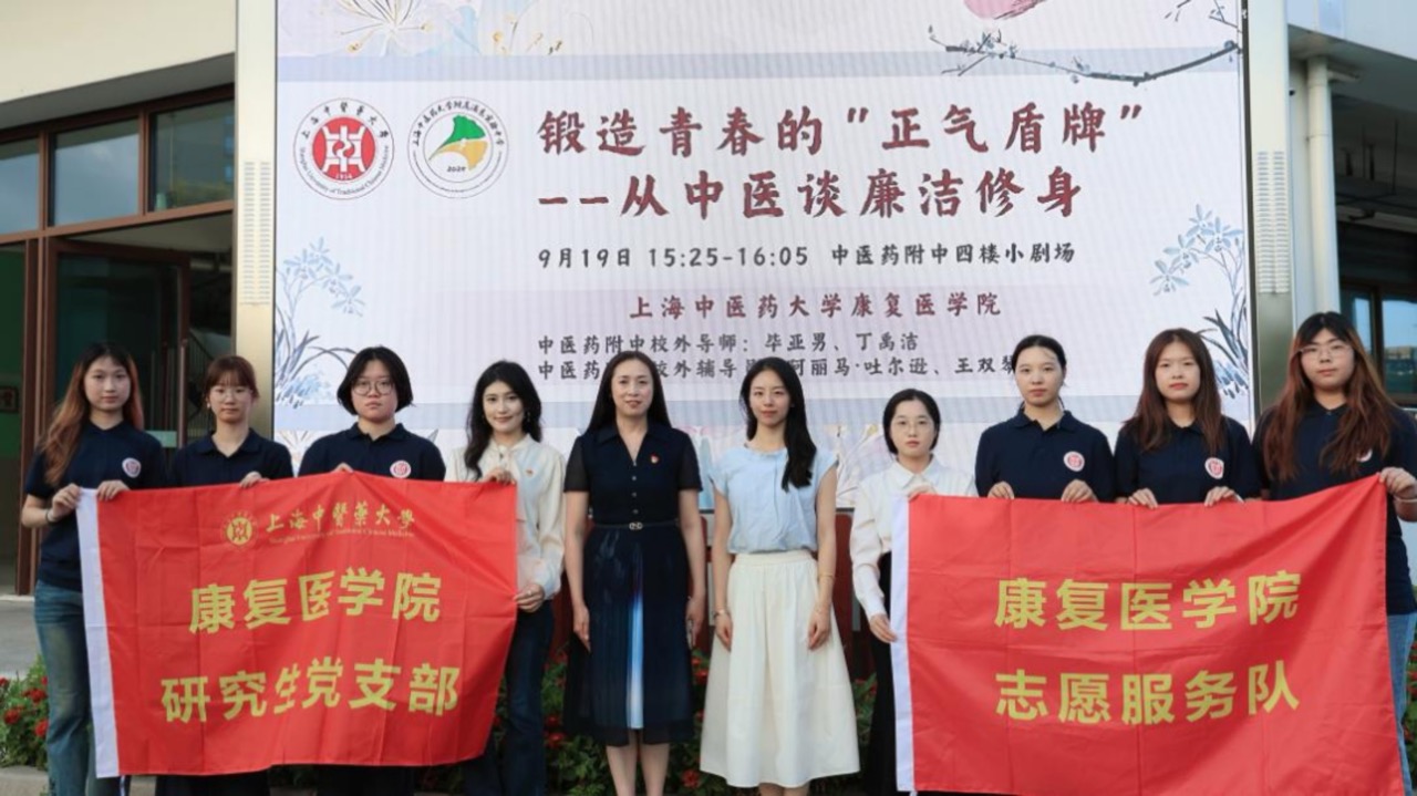 2025年9月19日,开云电竞官网下载安卓康复医学院党委副书记毕亚男、研究生党支部书记丁禹洁带队前往开云电竞官网下载安卓附属浦东实验中学,组织研究生党员阿丽马·吐尔逊、王双琴及“岐黄轩”志愿者服务队,开展了题为“锻造青春的正气盾牌:从中医谈廉洁修身”的主题授课。开云电竞官网下载安卓附属浦东实验中学党支部书记范晓芳、德育处副主任俞伟平共同出席了本次活动。