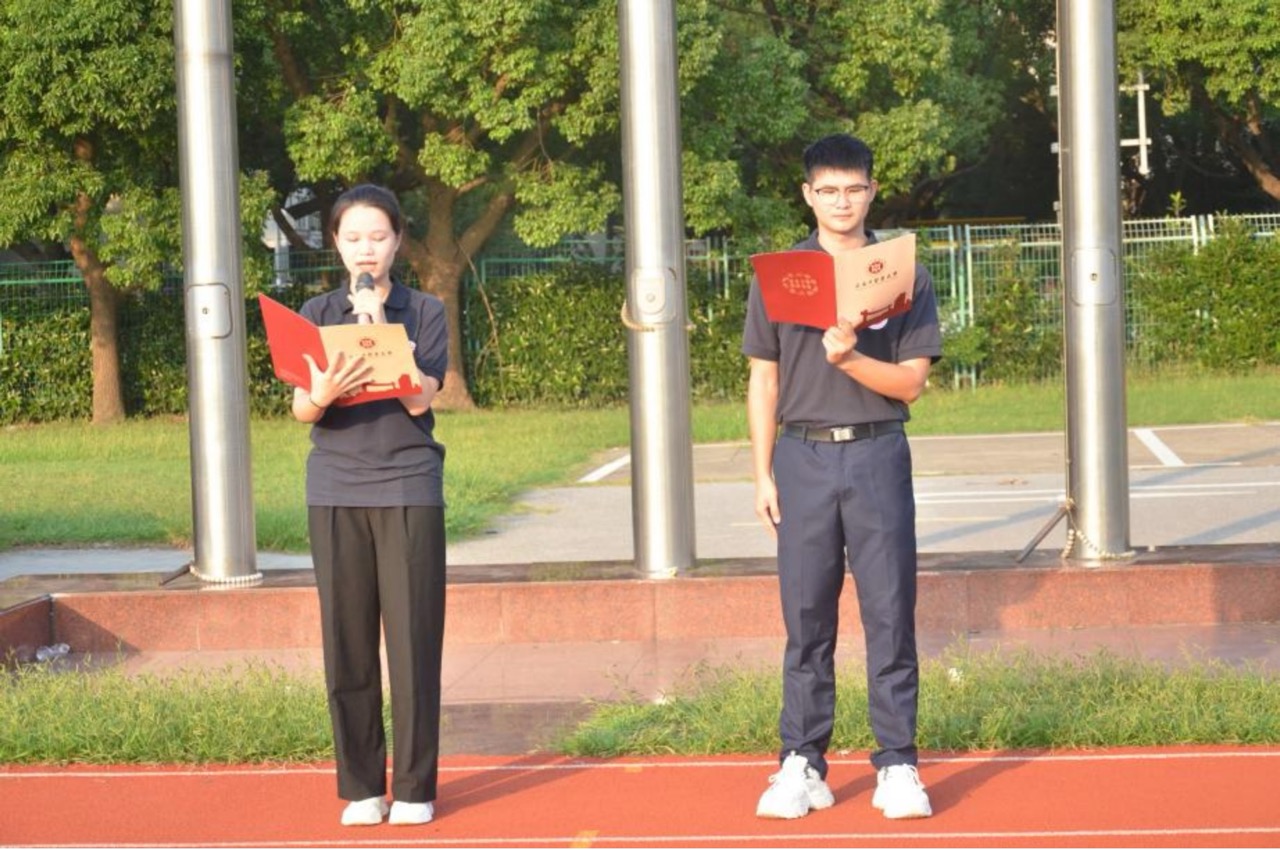 在升旗仪式后,徐优然、钱晨瑜、贾云帆、王嘉睿同学以“盛世华章,青春诵歌”为主题进行朗诵,号召全体同学:要立志、有理想;敢担当、敢拼搏;能吃苦、能奋斗;肯实干、善创新。不负盛世,不辱重任,以理想为帆、奋斗为桨,在拼搏中开启青春新程。