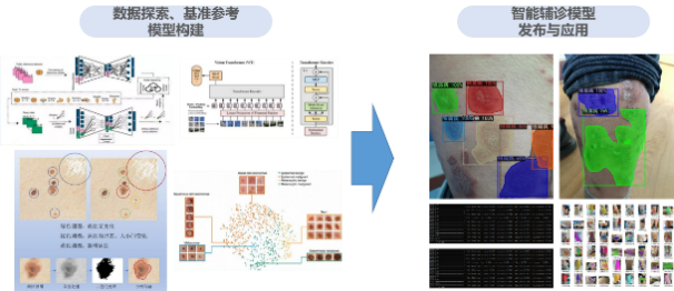 本项目利用中医四诊设备、皮肤病图像采集设备,首先对试点医院皮肤病患者数据进行分型研究,建立皮肤病患者动态健康画像,构造中医皮肤病智能模型,为实现皮肤病的个性化、精准化、智能化中医诊断及疗效评价,奠定数据与算法基础。重点针对银屑病、湿疹及有关疾病,建立真实世界样本队列,研发并迭代中医皮肤病诊疗人工智能算法,通过覆盖信息采集、数据训练、算法优化、智能辅助诊疗等环节的全数字化流程,打造成中医皮肤病智能诊室,成为中医皮肤科医生的临床智能辅助诊疗平台、临床大数据平台、临床科研管理平台、人工智能训练平台等。