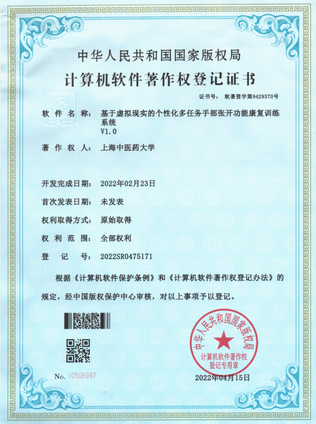 虚拟现实康复训练系统软件著作权和发明专利