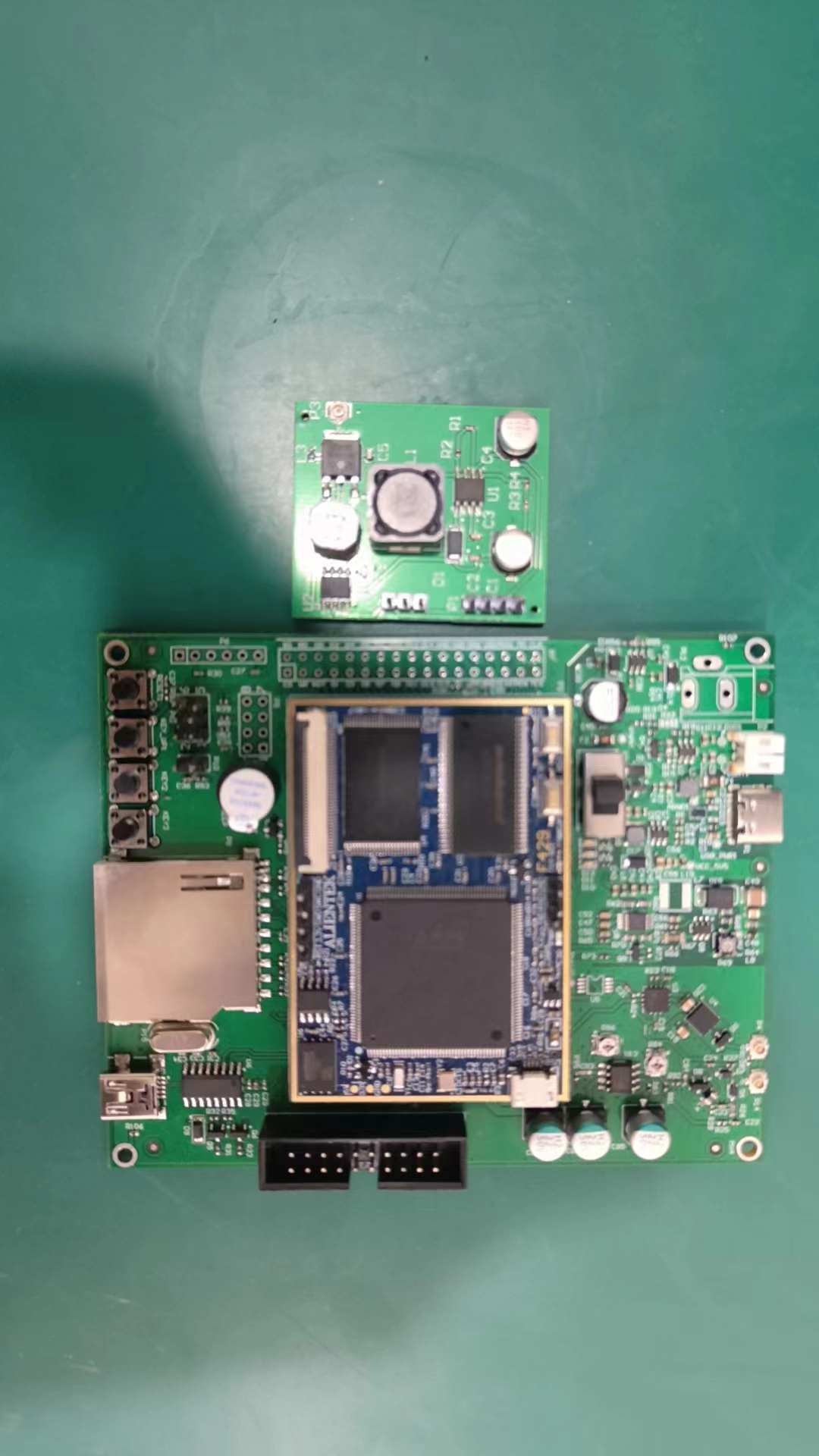 可穿戴低能量超声发射硬件电路系统(上);无限级联超声探头设计图(下)
