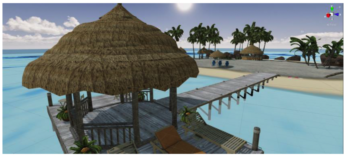通过头戴式虚拟现实眼镜套装进行虚拟环境下的康复模式训练,将在患者视角里出现虚拟场景,进而进行情景式康复训练,提高患者参与训练的趣味性。