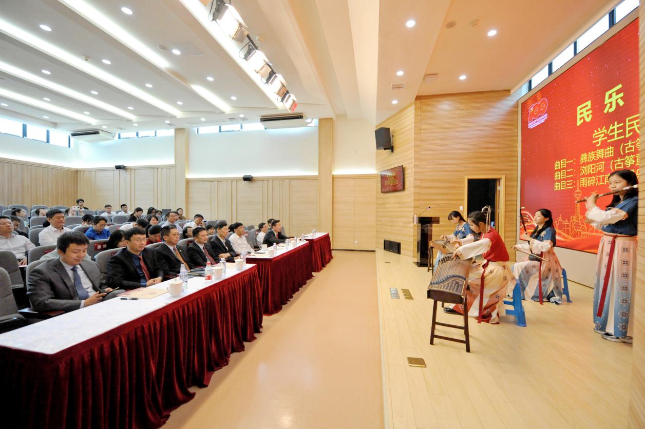 签约仪式上,我校学生民乐团先后表演古筝独奏、二重奏与民乐合奏等节目,会议在全体参会人员《歌唱祖国》的嘹亮歌声中结束。