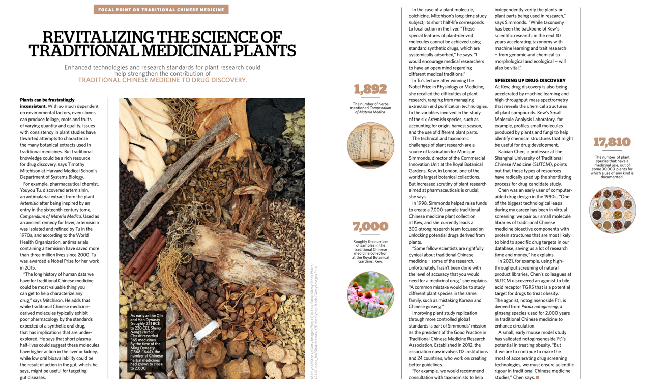 国际高水平学术期刊《自然》(Nature)主刊于10月7日全球发布《焦点关注中医药》特刊(https://www.nature.com/collections/aeicdaeegi),这是《自然》主刊第一次以焦点关注特刊的形式来关注中医药的发展。期刊编辑总览部分,特别访谈了中国科学院院士、开云电竞官网下载安卓终身教授陈凯先在中医药现代化方面所做的工作。特刊报道中,开云电竞官网下载安卓、暨南大学、花莲慈济医院(中国台湾)等机构相继介绍了各自在中医药研究中取得的突出成果。