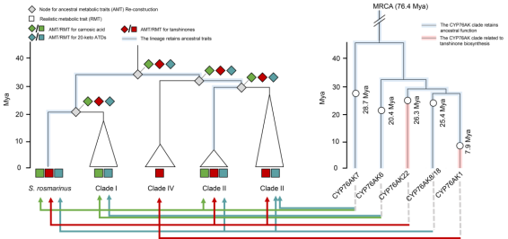 鼠尾草属(SalviaL.)是唇形科最大的属,包含诸多文化和经济上的重要植物资源,其中以我国大宗药材丹参(Salvia miltiorrhizaBunge)以及欧洲草药药鼠尾草(Salvia officinalisL.)应用最为广泛。丹参酮类成分(19/18碳)以及鼠尾草酸类衍生物(20碳)作为鼠尾草属中松香烷二萜的代表性成分,呈现出丰富的结构多样性,且具有明显的物种差异分布特征。为阐明鼠尾草属中松香烷二萜类化合物的结构多样性特质及其形成机制,该研究首次以植物属内进化为第一分析视角,广泛收集了覆盖全世界的3个主要鼠尾草分布中心的大量物种,构建了丰富的鼠尾草种质资源库,对其中71个典型物种进行深入的代谢组、转录组、祖先性状与基因重构、演化模型构建。研究发现,丹参酮类活性成分在不同鼠尾草类群中存在明显的类群性分布特征。有趣的是,与先前普遍认知大相径庭,丹参酮并不仅仅存在于以丹参为代表的东亚鼠尾草类群中,该类化学成分在鼠尾草属最初分化出现时(约3800万年前)就已经在最古老的物种中存在,而随着类群的分化,合成丹参酮的能力却在欧亚、南美,以及北美的大部分鼠尾草物种中丢失。鼠尾草属中独有的细胞色素酶P450亚家族(CYP76AK)是丹参酮类成分特异类群性分布的决定因素,各类群中的CYP76AK分支对于松香烷型二萜骨架C-20位的氧化模式存在严格的类群性差异,这成为了各类群中松香烷型二萜的合成途径分化的“岔道开关”。该研究不仅讲述了丹参酮这一重要中药药效成分在丹参中特异合成累积的演化故事,更为丹参酮类活性成分的药用资源拓展提供了理论依据,丰富了中药品质形成机制的科学内涵。本研究所揭示的以基因功能丢失为驱动力的化学多样性形成机制可作为植物化学多样性进化研究的重要关注点。