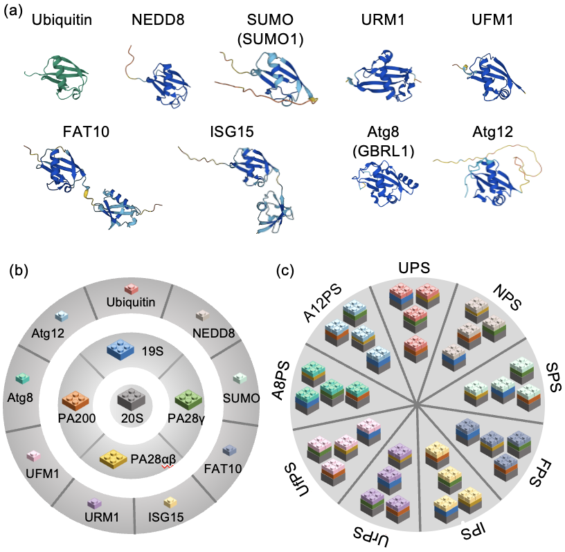 蛋白酶体是细胞中蛋白降解的主要机器。一般认为蛋白降解需要泛素化修饰,即所谓的泛素-蛋白酶体系统(Ubiquitin proteasome system, UPS),但越来越多蛋白的蛋白酶体降解被发现并不依赖泛素的修饰。作者的前期研究表明,经典的UPS底物β-catenin的蛋白降解并不依赖于Ub修饰,而是依赖类泛素(Ubiquitin-like, UBL)蛋白NEDD8的修饰(Wang B, et al, Cell Reports 2022)。基于此,作者系统地探讨了多种UBL依赖的蛋白酶体降解途径(UBL-dependent proteasome degradation, UBLPD),并提出细胞内存在独立于UPS的蛋白酶体降解系统,即类泛素化蛋白酶体系统(UBL-proteasome system, UBLPS)。