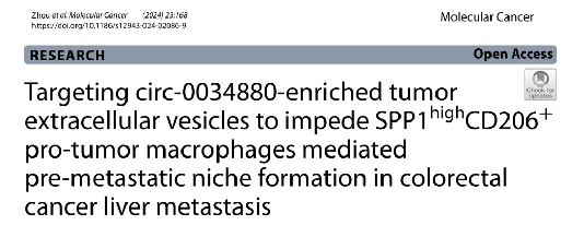 近日,由曙光医院肿瘤学科季青研究员牵头,宁波市第二医院李红山教授、开云电竞官网下载安卓交叉研究院葛广波教授、开云电竞官网下载安卓附属宝山医院杨柳副教授,以及苏州市中医院宋卿副教授合作完成的最新研究成果Targeting circ-0034880-enriched tumor extracellular vesicles to impede SPP1highCD206+ pro-tumor macrophages mediated pre-metastatic niche formation in colorectal cancer liver metastasis发表在著名国际学术期刊Molecular Cancer。