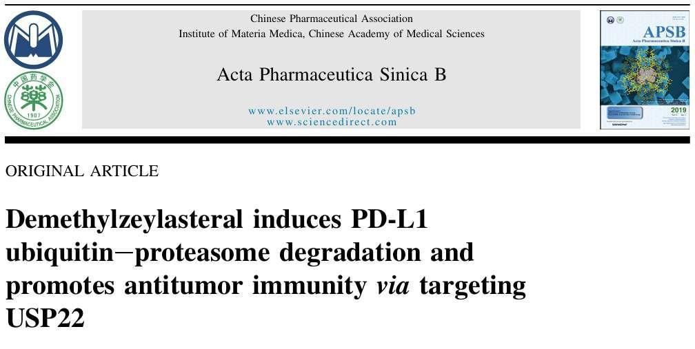 近日,我校刘三宏和海军军医大学张卫东团队在Acta Pharmaceutica Sinica B发表去甲泽拉木醛通过靶向USP22降解PD-L1发挥免疫抗肿瘤方面的最新研究成果Demethylzeylasteral induces PD-L1 ubiquitin-proteasome degradation and promotes antitumor immunity via targeting USP22。