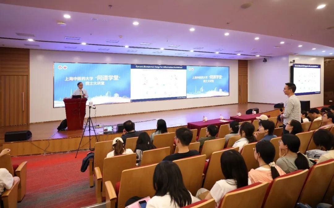 学术互动环节,师生们围绕“核酸结合聚合物”“中医药与抗炎”“研究模型”等方面踊跃提问,Kam W. Leong院士与师生深入交流。