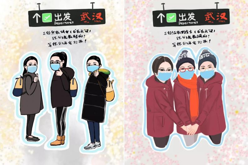 附属龙华医院首批援鄂医疗队成员,甄暐、陆蓓蓓、张怡青除夕夜驰援武汉,骨伤科护士长李群、肾内科主管护师李黎梅、重症监护室护师刘蕙宁作为上海第二批援鄂医疗队的成员,于大年初四接到任务匆匆奔赴抗疫前线,她们此刻仍战斗在武汉市第三医院的抗疫战场上。减去长发,还把新剪的发型称作“援鄂抗疫头”,把戴着的防护镜称作“雾里看花”,她们希望用这一份乐观和坚持,影响到更多的人。她们悉心护理病患,为武汉同行加油打气。李群穿着沉重的防护服弯腰半小时给患者喂粥,李黎梅在工作之余为头痛的武汉护士按摩合谷穴,刘蕙宁在为重病患者进行专业和基础护理时充分展现出专业精神。张怡青说,由于长时间佩戴口罩,每个人的脸上留下了大小深浅的痕迹,有些人由于过敏,戴手套的手起了水泡,但大家都笑着相互打气。正月十五元宵节不能陪伴在家人身边,但支援武汉,她们义无反顾,上海“小笼包”为武汉“热干面”加油!