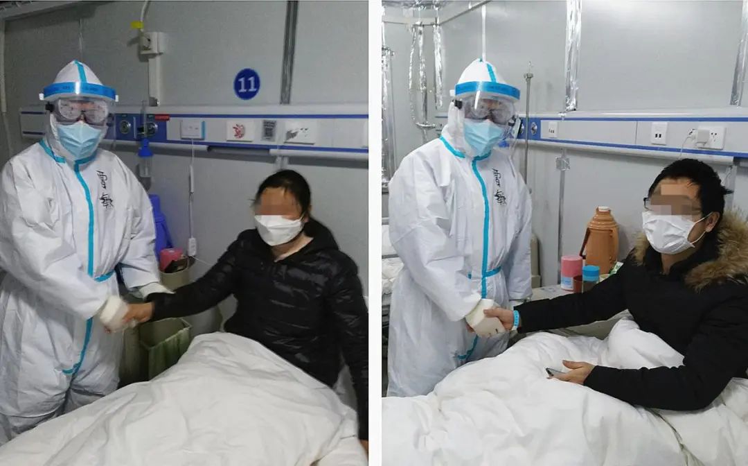 “第一次戴双层手套打留置针,一次就成功了,我很开心很有成就感。工作时穿着厚厚的防护服,戴上口罩,有时真的很累,但一想到自己能为大家筑起守护的城墙,心里的成就感爆棚。”龙华医院肺病科护士汪小娜在日记中写道,“隔离病毒,但不隔离爱,疫情的阴霾,挡不住四面八方的‘阳光’。我相信全国人民众志成城,一定能打赢这场没有硝烟的战争!武汉加油!中国加油!”