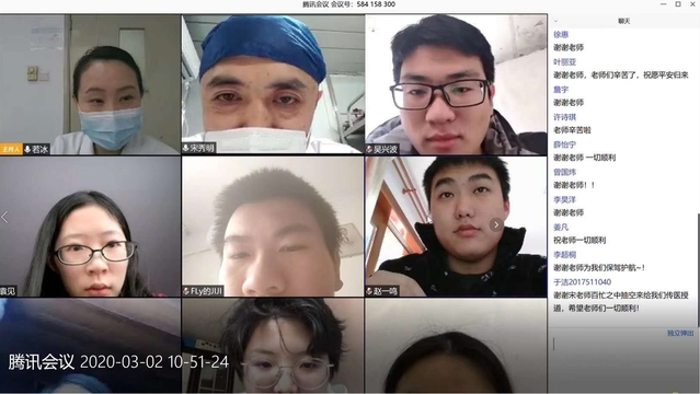 3月2日,学校组织开展在线课堂,连线援鄂医疗队医护人员,图为连线附属曙光医院宋秀明与学生们实时交流