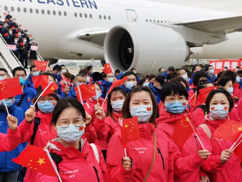 在武汉雷神山医院奋战48天后,我校附属第七人民医院50名援鄂医护人员圆满完成任务返沪
