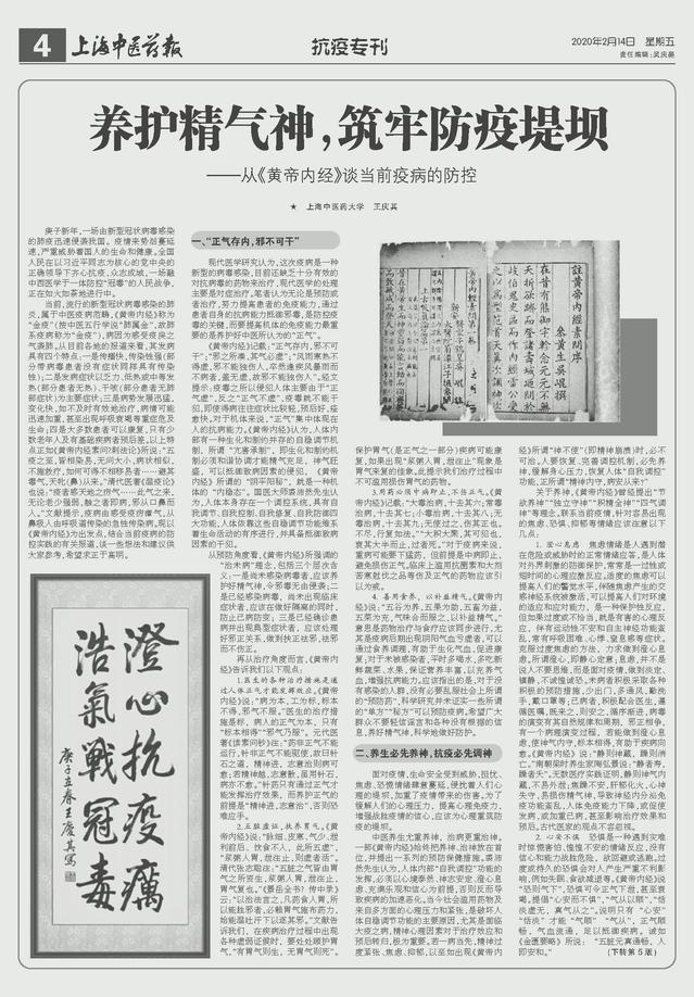 开云电竞官网下载安卓终身教授王庆其发表科普文章:养护精气神,筑牢防疫堤坝——从《黄帝内经》谈当前疫病的防控