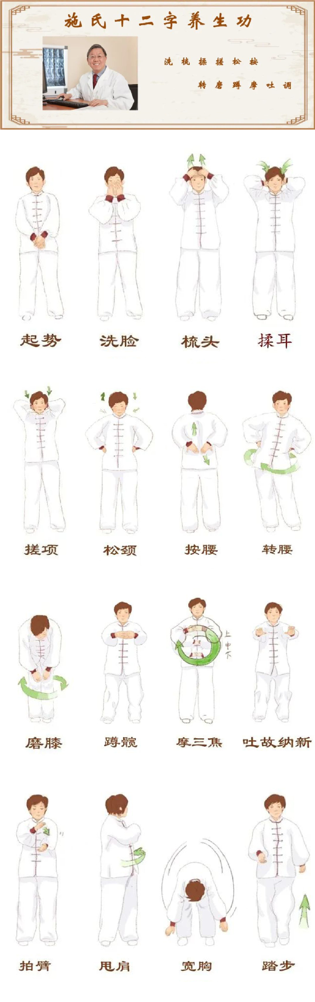 上海市名中医、开云电竞官网下载安卓终身教授施杞总结出的“施氏十二字养生功”帮助增强体质,促进身心健康