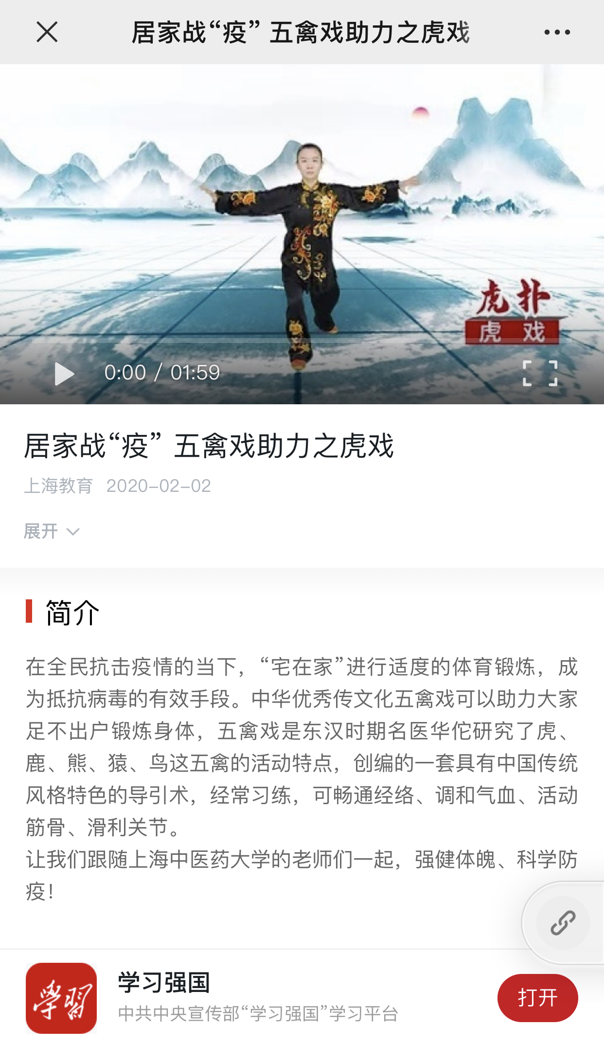 五禽戏助力居家战“疫”