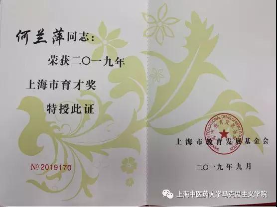 我院何兰萍老师荣获2019年“上海市育才奖”