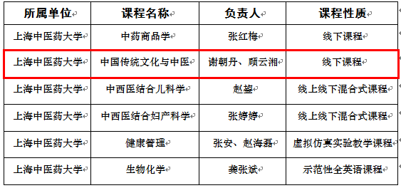 日前,上海市教委发布了《上海市教育委员会关于公布2022年度上海高校市级重点课程立项名单的通知》(沪教委高〔2022〕27号),公布了2022年批准立项的课程名单,我校6门课程获批立项。其中,我院谢朝丹、顾云湘老师主持的《中国传统文化与中医》获上海市重点课程立项。