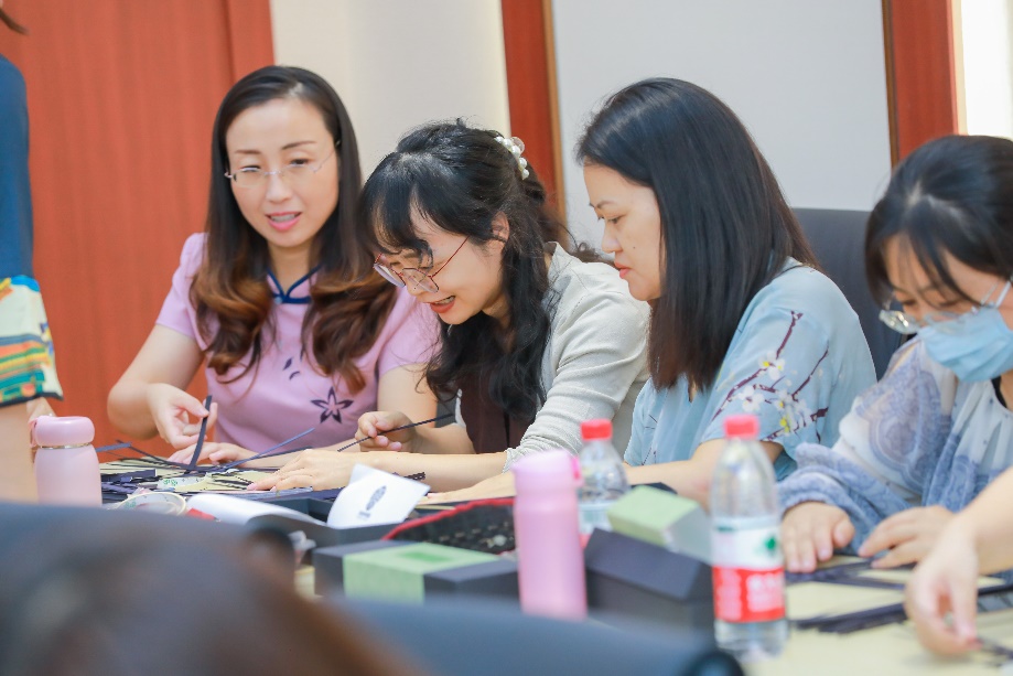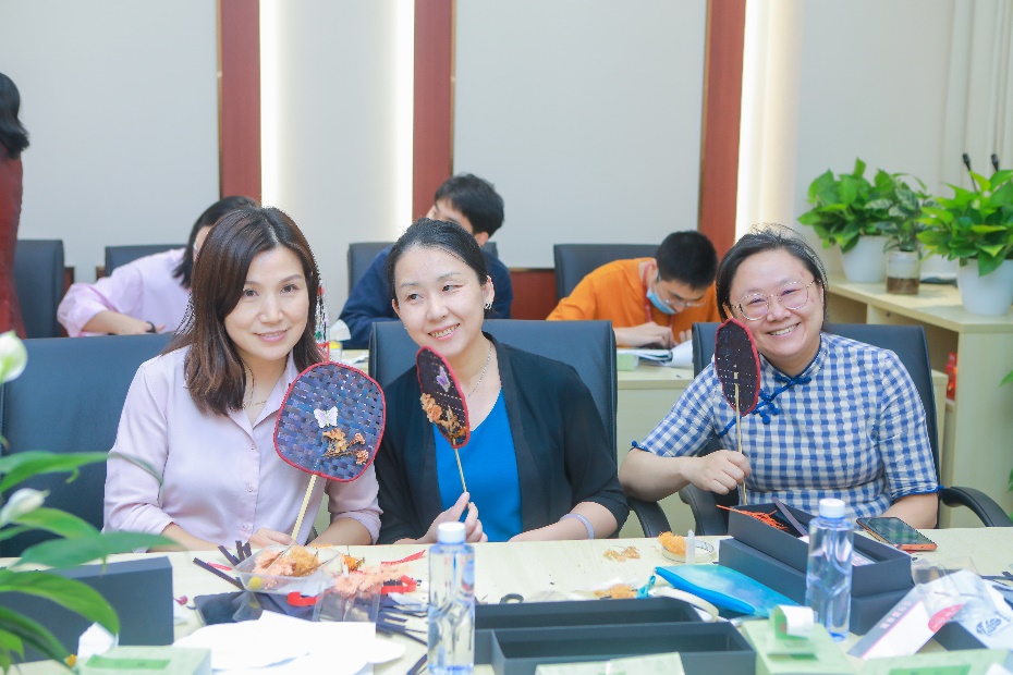 非遗手作,匠心之美。活动特别邀请到上海奥博培训机构负责人、著名非遗文化讲师宋志敏女士为老师们开展非遗手作的培训和指导,带领大家共同探索中国传统文化与生活美学的跨界融合。通过非遗手作“竹编团扇”,让教师们更深入细腻地感受中华文化之美,体悟中国传统文化的精髓。