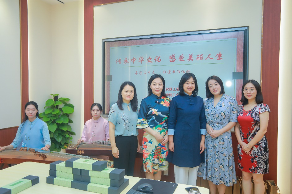 9月23日下午,科技人文研究院、马克思主义学院部门工会在11403会议室共同举办“喜迎二十大非遗手作活动”,本次活动的主题是“传承中华文化 感受美丽人生”,两个部门的党政领导和近40位教职工参加。活动在民乐团学生的古筝二重奏《战台风》中拉开序幕。