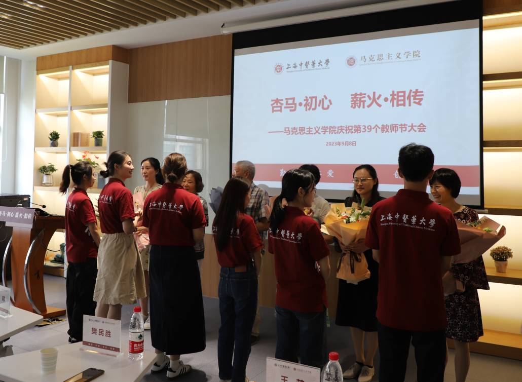会议结束后,研究生向全体马院教师献花,会场在庄重而又温馨的氛围中落幕。