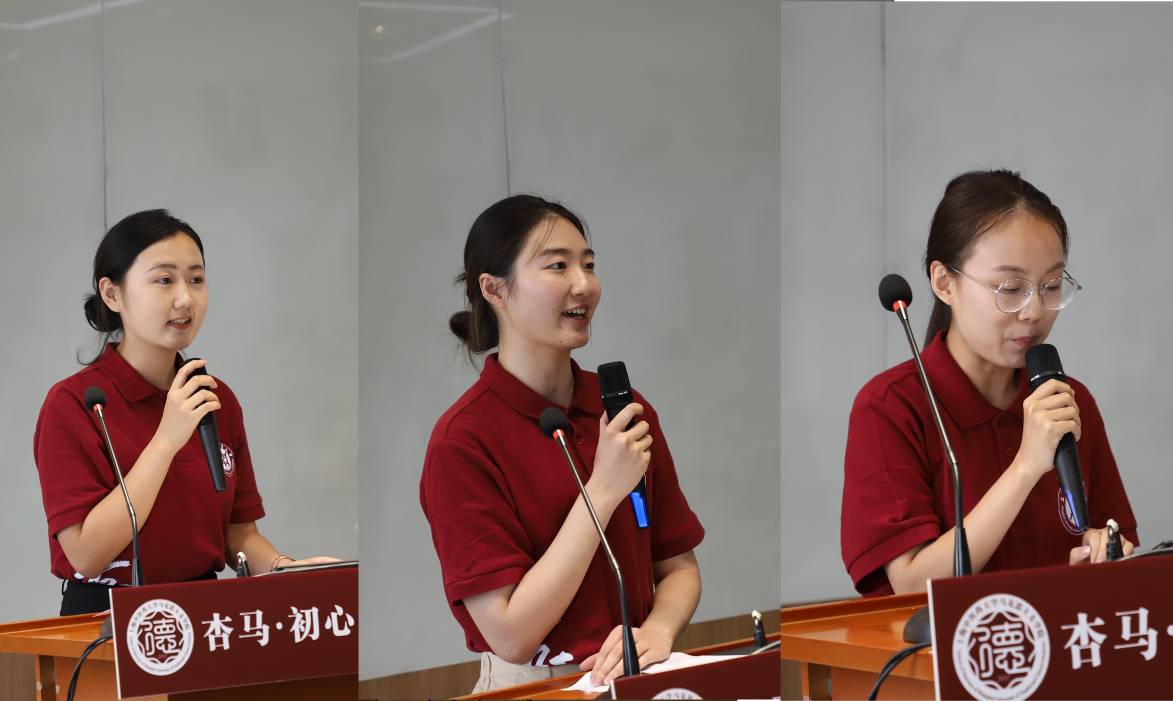 接下来,研究生代表们走上舞台,分别是21级的赵亚娣、22级的王晓丹和23级的杜佳瑶,她们表达了对研究生生活的感想,以及对学院和导师们的深深感激之情。