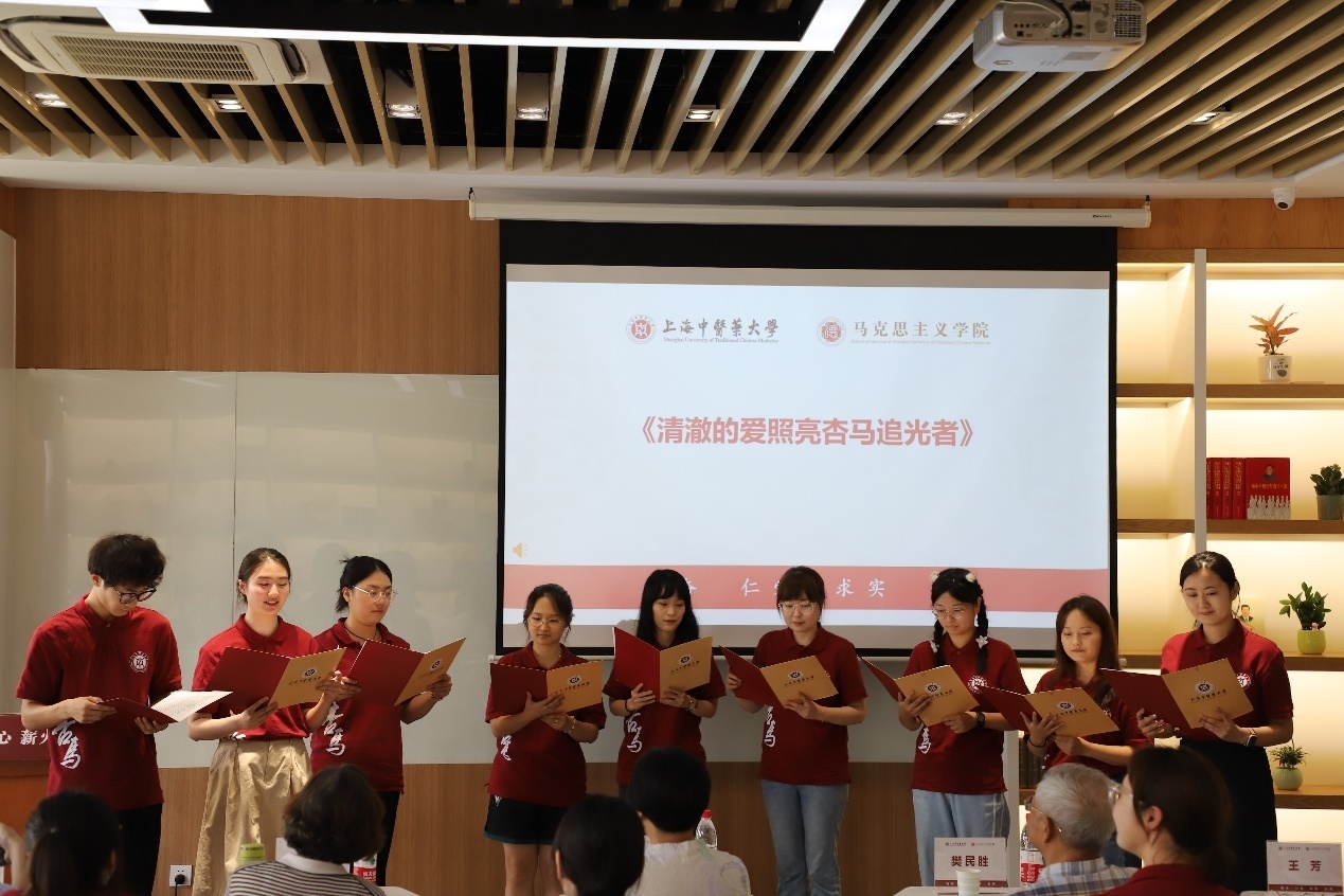 在接下来的节目环节,研究生们为观众带来了一场感人至深的手舞《感恩的心》和原创诗歌朗诵《清澈的爱照亮杏马追光者》,以感恩之心表达对导师的敬意。