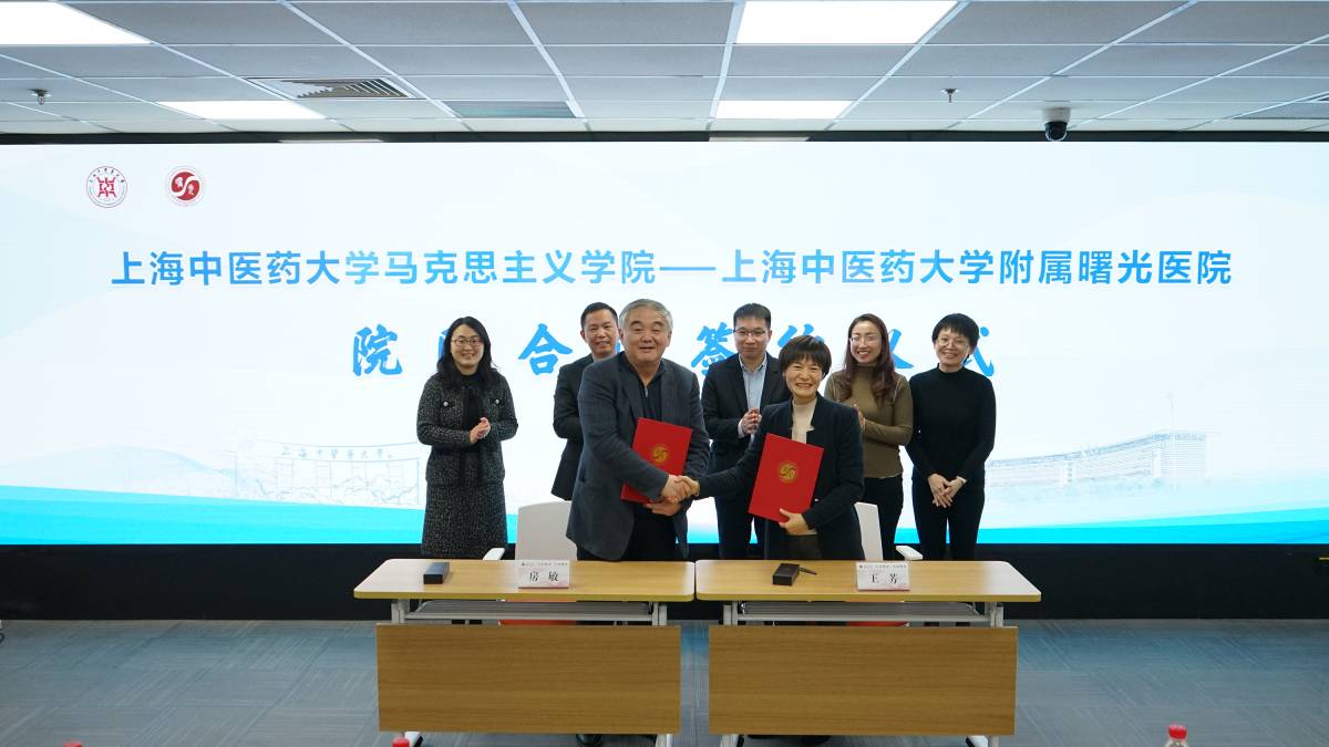 周强峰在致辞中指出,在深化高等教育综合改革、促进中医药事业传承创新发展的新时期,推动与马克思主义学院的深度合作,是马克思主义之“魂”与中医药传统之“根”的深入融合。马克思主义学院与曙光医院肩负着共同的育人使命,探索党建引领下的院院合作新模式、新途径具有重要意义。在双方学院领导与师生的共同见证下,马克思主义学院院长王芳、曙光医院院长房敏签署合作协议。