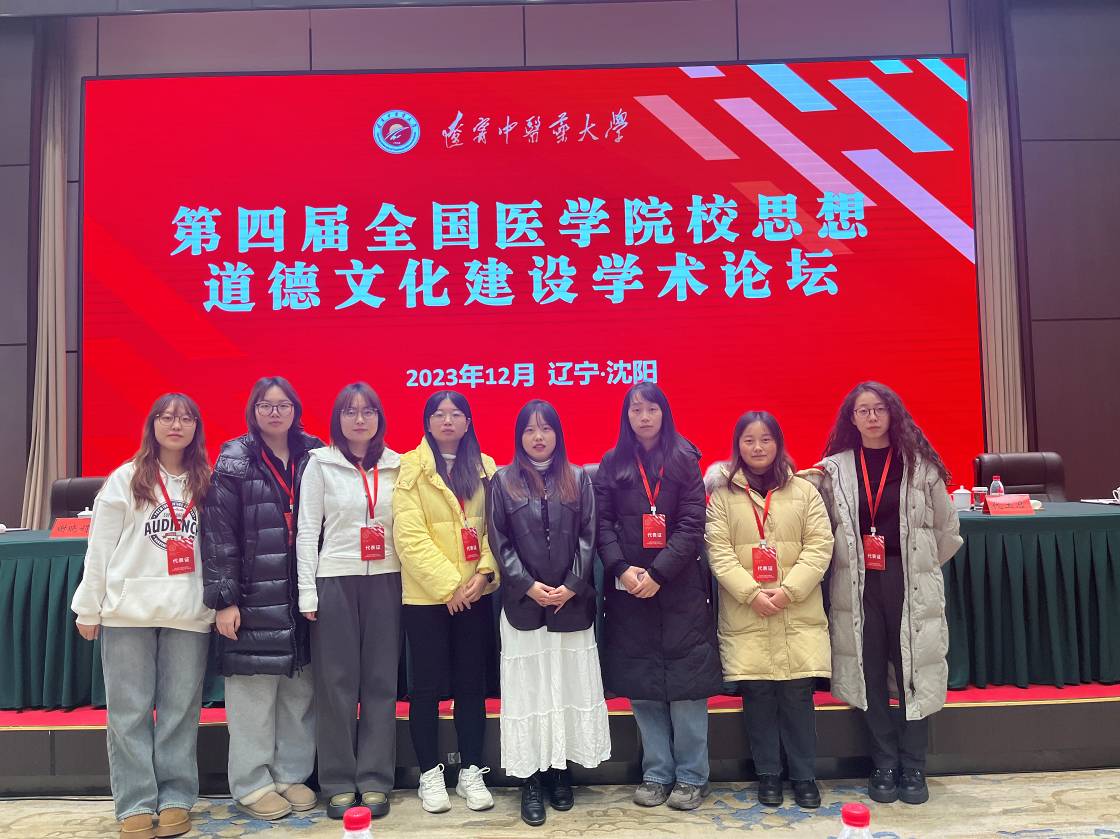 2023年12月22日,第四届全国医学院校思想道德文化建设学术会议暨全国医学院校思想道德文化建设研究生论坛在辽宁中医药大学召开,来自全国各地的医学院校代表和专家学者齐聚一堂,共同探讨新时代背景下医学院校思想道德文化建设的新思路和新举措。我院师资博士后杨文萱老师一行八人参会。