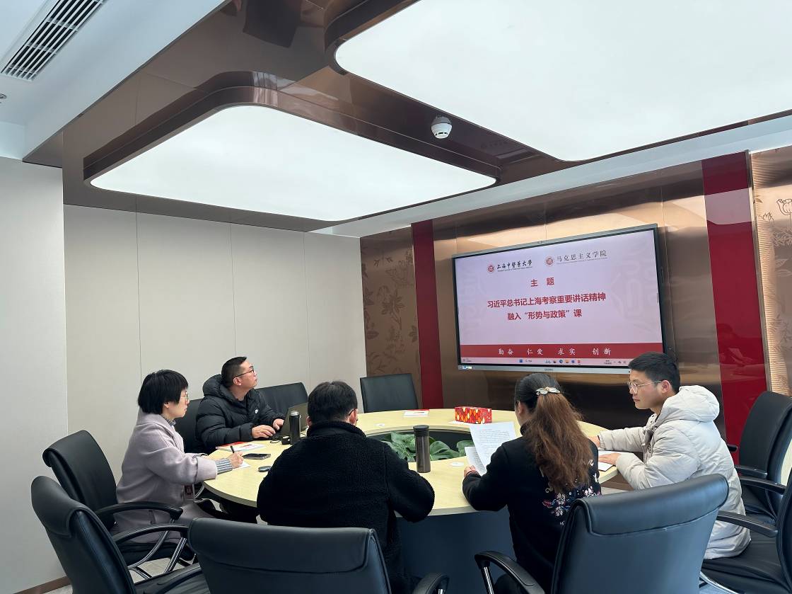 15下午,形势与政策教研室召开2023-2024学年第五次校内集体备课会,重点探讨习近平总书记上海考察重要讲话精神融入课程教学。教研室全体教师及学工部骨干教师、学院教学委员会成员杨丽霞老师参会,教研室主任何兰萍老师主持备课会。