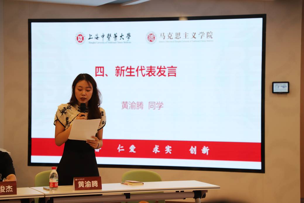 王敬老师从研究生培养、学生工作特色项目、学生重点项目、其他工作等方面向新生全面系统地介绍了马院的学生工作概况。随后,9名研究生新生依次进行自我介绍。新生代表黄渝腾在发言中畅谈了对学习马克思主义理论的认识,号召大家始终保持对真理的追求和对理想的执着,用实际行动践行所学。