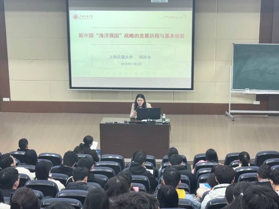 为深入贯彻落实习近平总书记关于学校思政课建设的重要指示精神,全面落实新时代学校“大思政课”建设要求,2025年1月3日下午,上海交通大学研究员、董浩云航运博物馆执行馆长刘岸冰应邀为我校“形势与政策”课本科生授课。本次授课的主题为“新中国‘海洋强国’战略的发展历程与基本经验”。