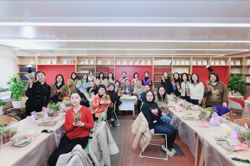 活动伊始,老师们围坐一堂,在专业花艺师的指导下,纷纷化身成为微世界的创造者,栽种、布局、装饰……一招一式展示着对美的追求与对大自然的热爱。 微景观的制作,不仅是手工技艺的展示,更是一次心灵的洗礼,老师们在动手之余体会到自然与艺术的和谐。在“三八”妇女节即将到来之际,活动为女教师们提供了一个展示自我、放松身心的平台,让她们同时也感受到来自学校和二级部门的温暖。