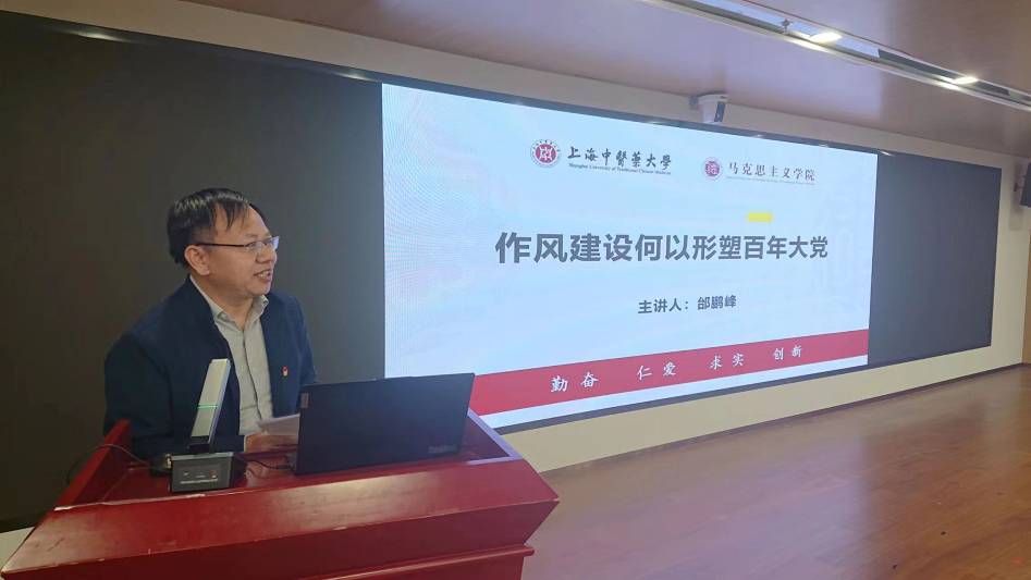 在专家报告环节,马克思主义学院第一党支部邰鹏峰作了题为《作风建设何以形塑百年大党》的专题报告。报告从党的作风建设的重要性、何谓党的作风问题、何以改进和加强党的作风建设以及党的作风建设目标何在四个关键方面展开了深度剖析,强调了党的作风建设事关党的生死存亡和事业的兴衰成败,改进作风应当以中央八项规定为标准,常抓不懈,在自我革命中不断焕发党的生机与活力。