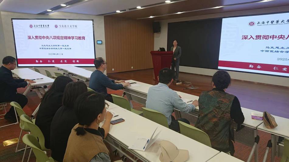 2025年4月11日下午,马克思主义学院第一党支部与中西医结合学院教工第一党支部开展了“深入贯彻中央八项规定精神学习教育”联学共建主题党日活动。此次活动还特邀马克思主义学院第二、第三党支部共同参与,活动由马克思主义学院第一党支部书记何兰萍主持。